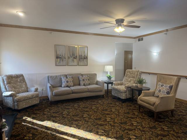 The home is created from the ground up to foster the same feelings and experience you get when living in a real home - your own home. All our resident rooms are on the main level, and the lower level opens to a beautiful, patio and garden area with walkways, a fountain and abundant wildlife. Our home has a high staff to resident ratio with a full-time on-site Registered Nurse to meet the needs of the residents and provide oversight and supervision.